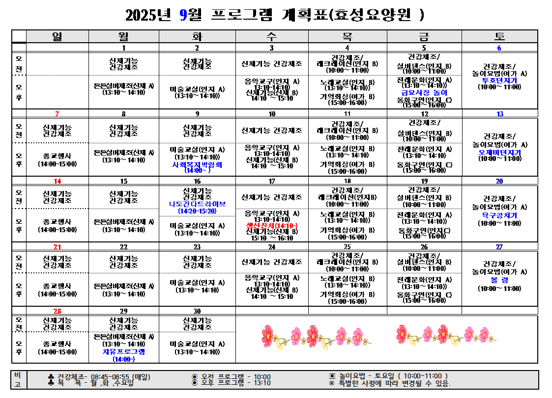 2025년 9월 프로그램계획표
