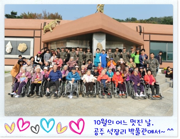 ▲▲▲ 이번 나들이에는 계룡대 군인들이 자원봉사를 해주셨습니다. 처음부터 끝까지 어르신들의 안전과 즐거운 나들이를 위해 최선을 다하는 모습이 (군인으로서) 너무나도 늠름하고 감사했습니다. ^^