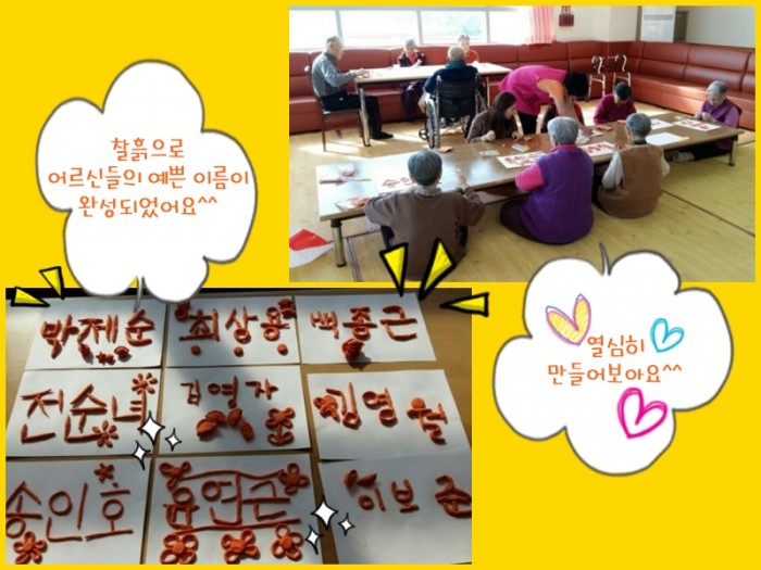 오늘은 찰흙을 이용해 어르신들의 이름을 만들어보았어요.
