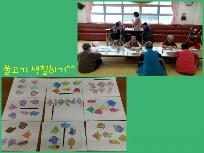윤새봄 선생님과 함께~~ 물고기에 다양한 색을 칠해보았어요^^