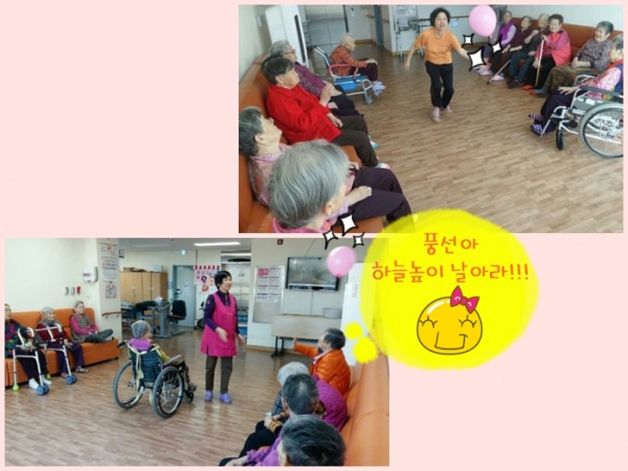 하늘 높이 던지면서~~~ 땅으로 떨어지지 않게~ 열심히 노력하시는 어르신들^^