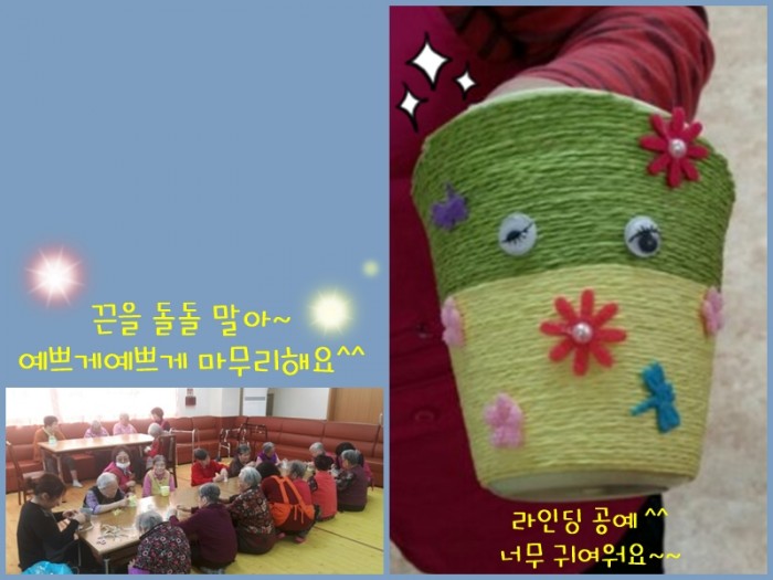 예쁜 색깔 끈을 이용해서 멋진 작품을 만들어보았어요^^