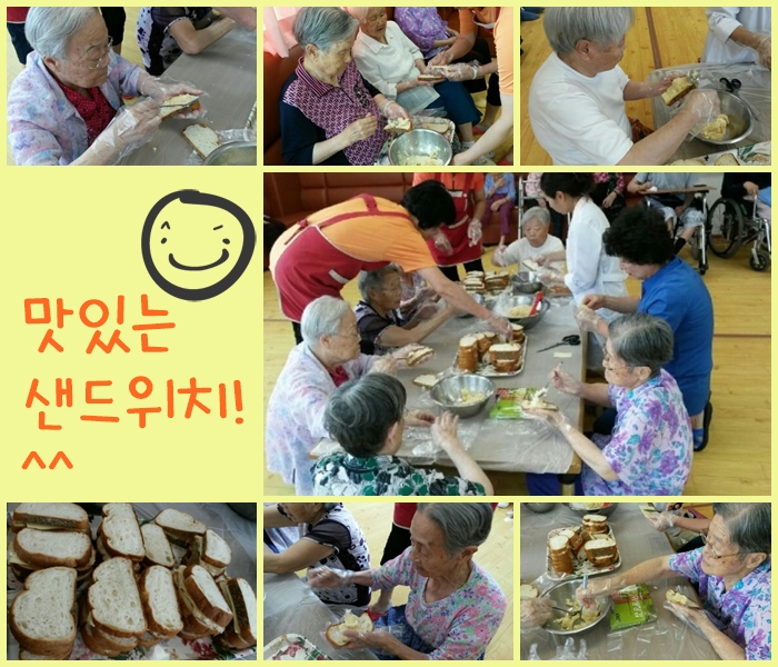완성된 샌드위치를 먹으며 어르신들께서 너무 맛있다고 칭찬을 아끼지 않으셨습니다...