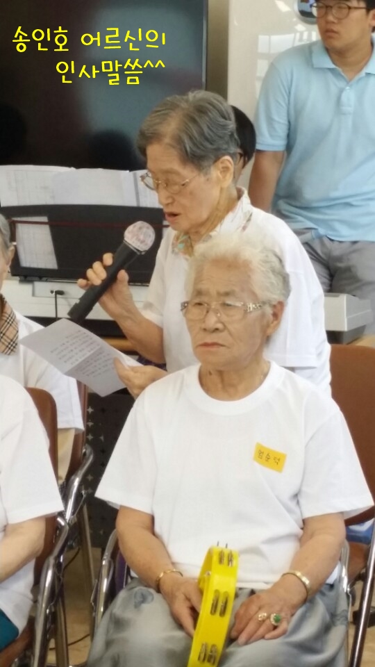▲▲▲ 연주가 시작되기 전, 어르신 대표로 송인호 어르신께서 그동안의 연주 연습과 오늘 공연에 대한 소감을 준비해주셨습니다. 길다면 길고, 짧다면 짧았던 6개월동안. 같은 곡을 연주하면서도 불만불평없이 연주에 임해주신 우리 어르신들!!! 오늘 그 빛을 발하는 시간(순간) !!!! 세상 그 누구보다 최고이며 존경합니다...