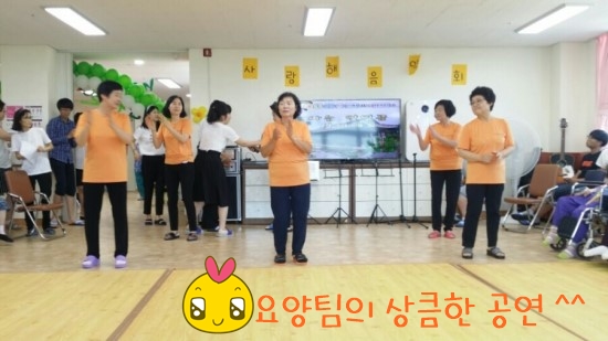 ▲▲▲ 이번에는 요양보호사 선생님들의 공연 모습이에요^^ 바쁘신데도 불구하고 틈틈이 모여 안무와 노래 연습을 하시며 어르신들에게 재미와 웃음을 드리려고 노력하시는 모습에 큰 박수를 보내드립니다.. ^^ 마음만큼은 늘 열입곱살이신 우리 예쁜 선생님들!!! ^^