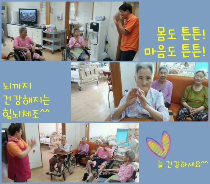 본관 어르신들께서 건강체조&힘뇌체조를 하고 계세요.
