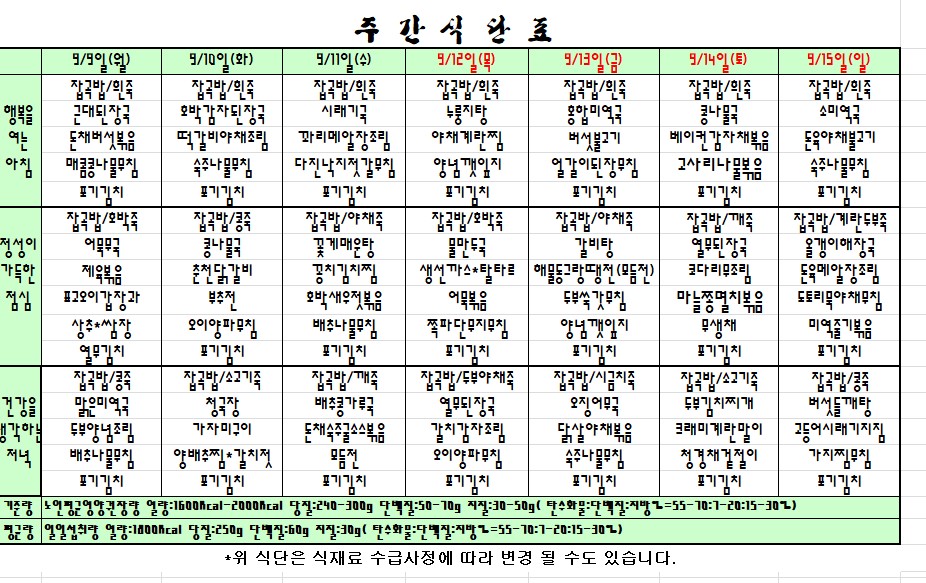 | 2019.09.09~09.15 주간식단표 관리자2019-09-06조회수 3487 |