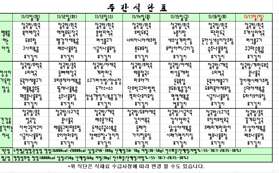 | 2019.11.11~11.17 주간식단표 관리자2019-11-08조회수 3514 |