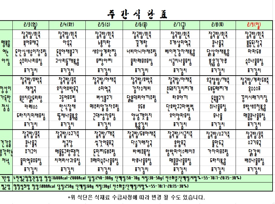 | 2020.02.03~02.09. 주간식단표 관리자2020-01-31조회수 3536 |