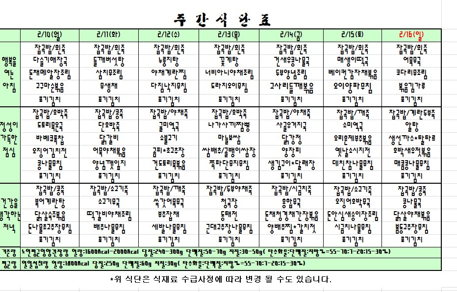 | 2020.02.10~02.16 주간식단표 관리자2020-02-07조회수 3558 |