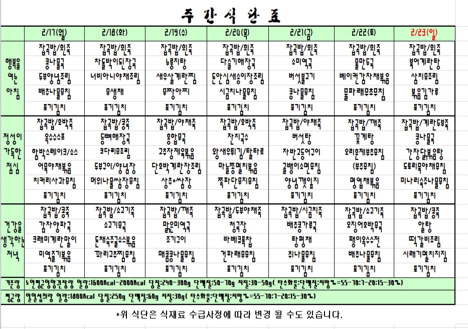 | 2020.02.17~02.23 주간식단표 관리자2020-02-14조회수 3629 |
