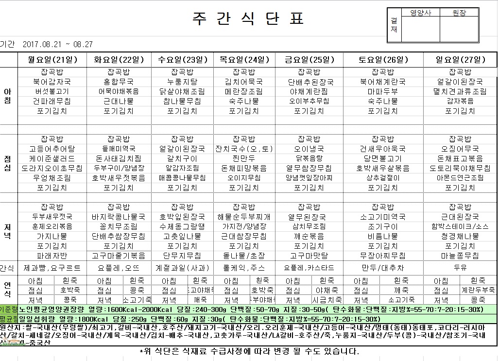 | 다음글 | 2017년 8월 14일 ~ 8월 20일 식단표 |