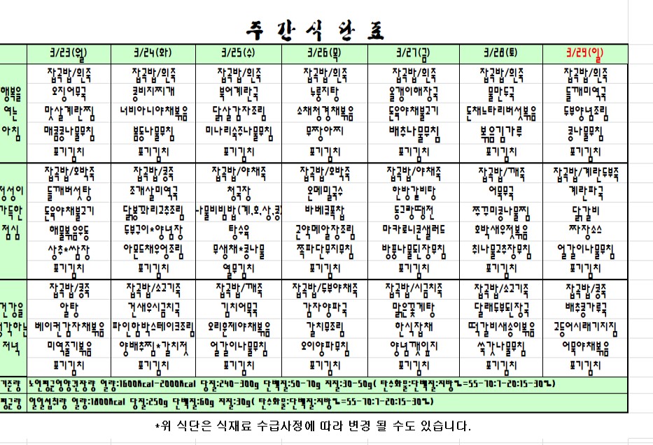 | 2020.03.23~03.29 주간식단표 관리자2020-03-20조회수 3626 |