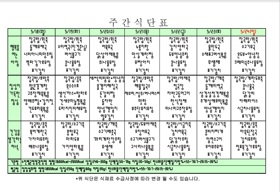 | 2020.05.18-05.24 주간식단표 관리자2020-05-18조회수 3694 |