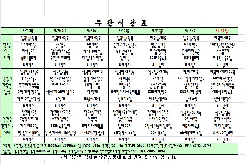 20.9.7~13일 주간식단표 입니다. |