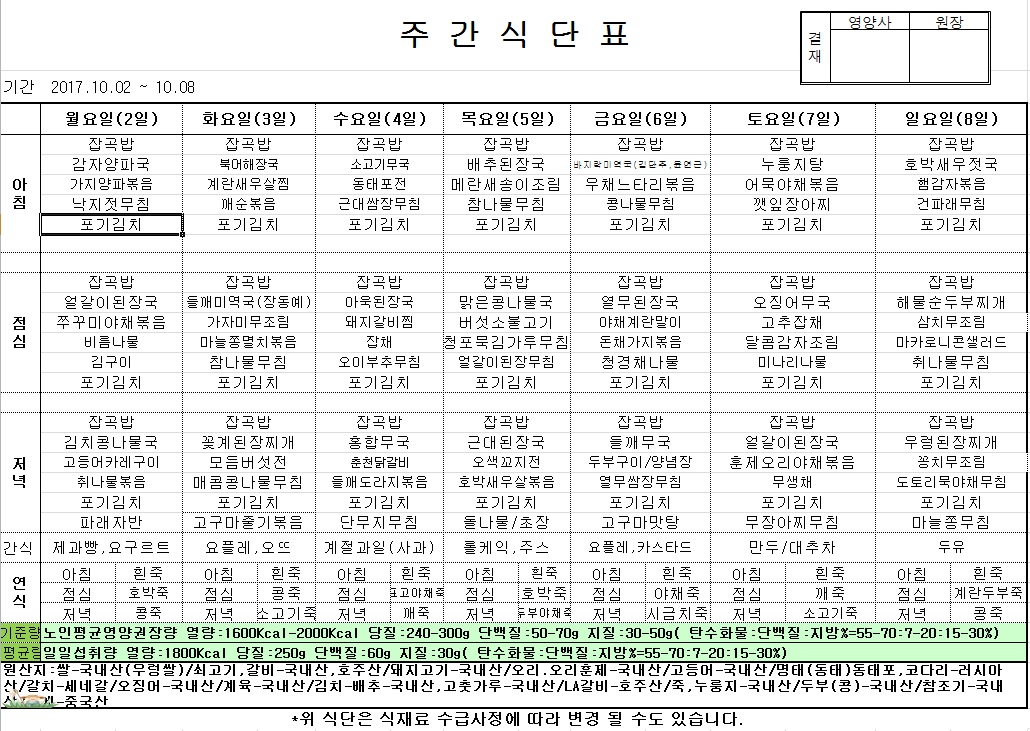 | 다음글 | 2017년 9월 25일 ~ 10월 1일 식단표 |