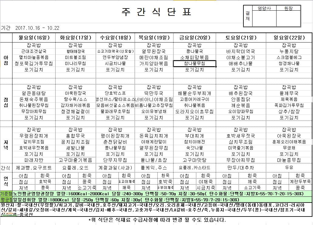 | 2017년 10월 16일 ~ 22일 식단표 관리자2017-10-16조회수 3579 |