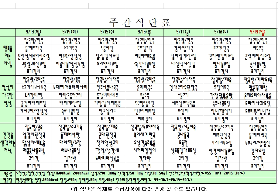 첨부파일 첨부 21.9.13~9.19 주간식단표.jpg [File Size:499.2 KB/Download:11]
