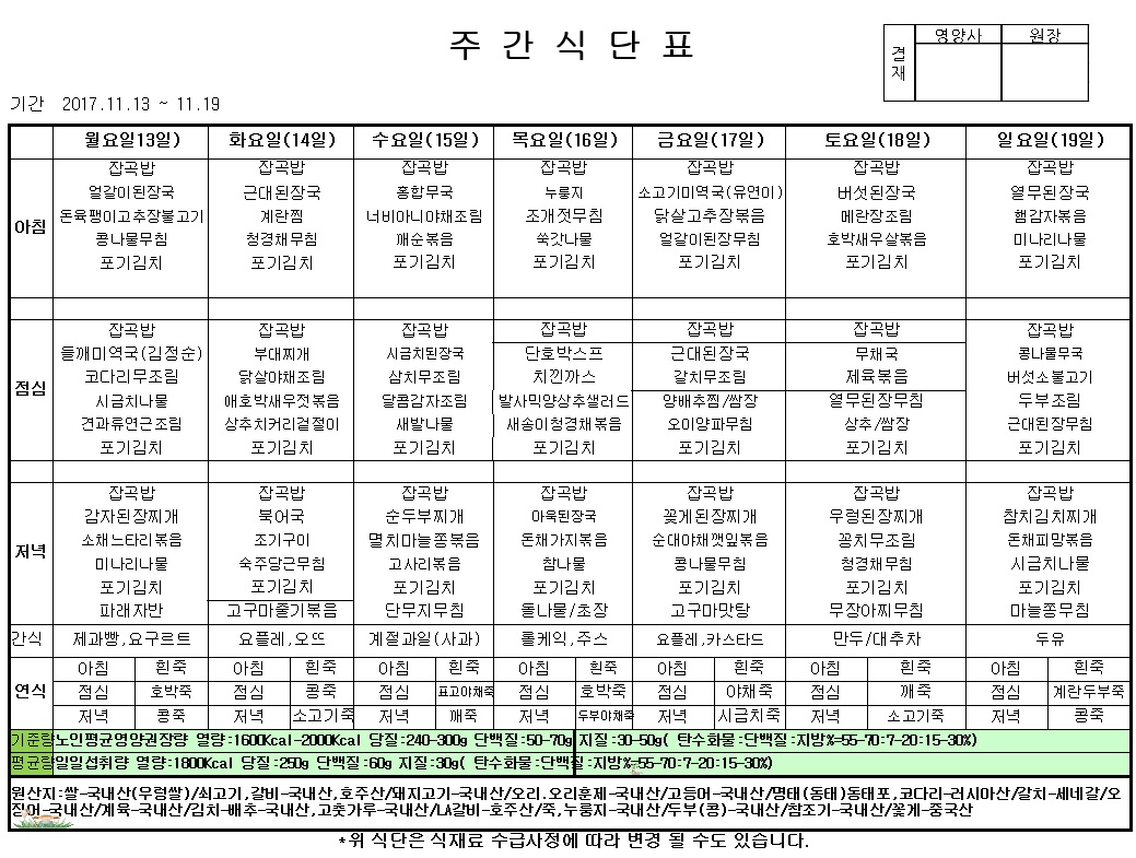| 2017년 11월 13일 ~ 19일 식단표 관리자2017-11-13조회수 3468 |