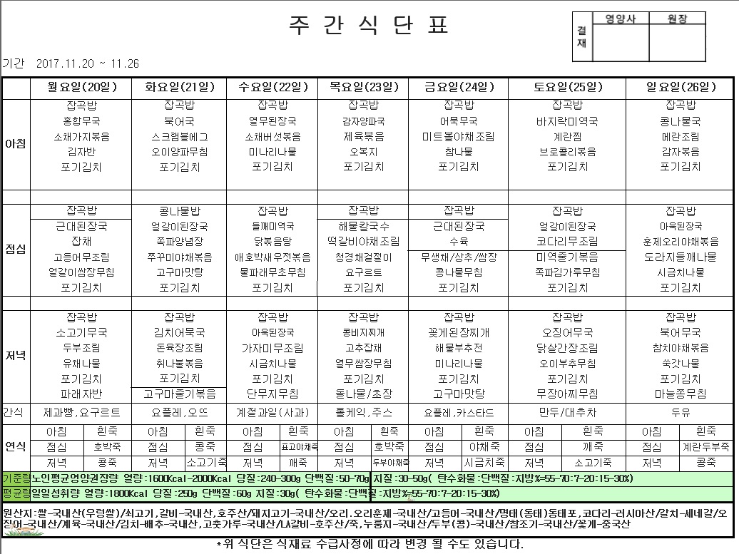 | 2017년 11월 20일 ~ 26일 식단표 관리자2017-11-20조회수 3510 |