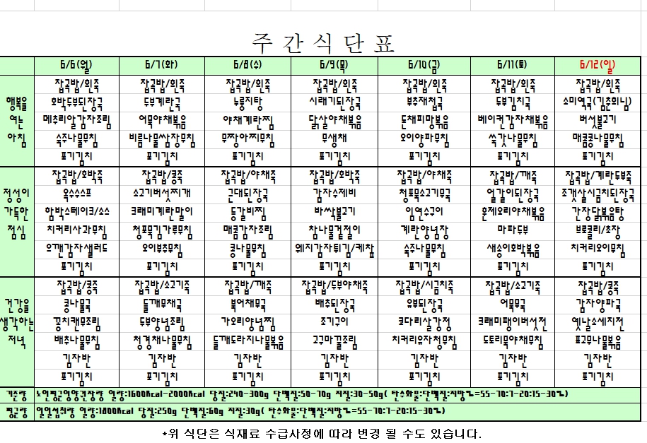이전글 2022. 06. 13 ~ 06. 19 주간식단표