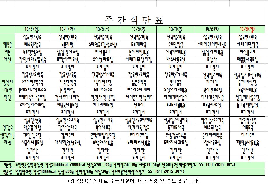 2022. 10. 03 ~ 10. 09 주간식단표