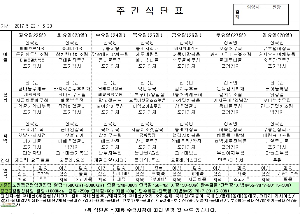 | 2017년 5월 22일 ~ 28일 식단표 관리자2017-05-22조회수 3512 |