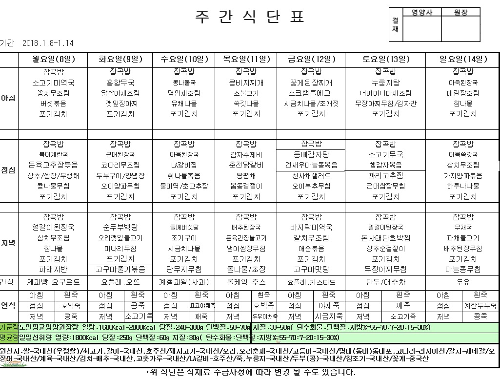 | 2018 년 1월 8일 ~ 14일 식단표 관리자2018-01-08조회수 3676 |