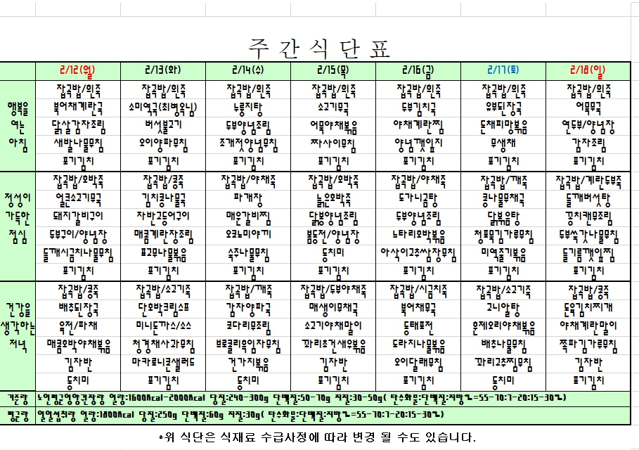 2024. 2. 12 ~ 2. 18 주간식단표 입니다. |