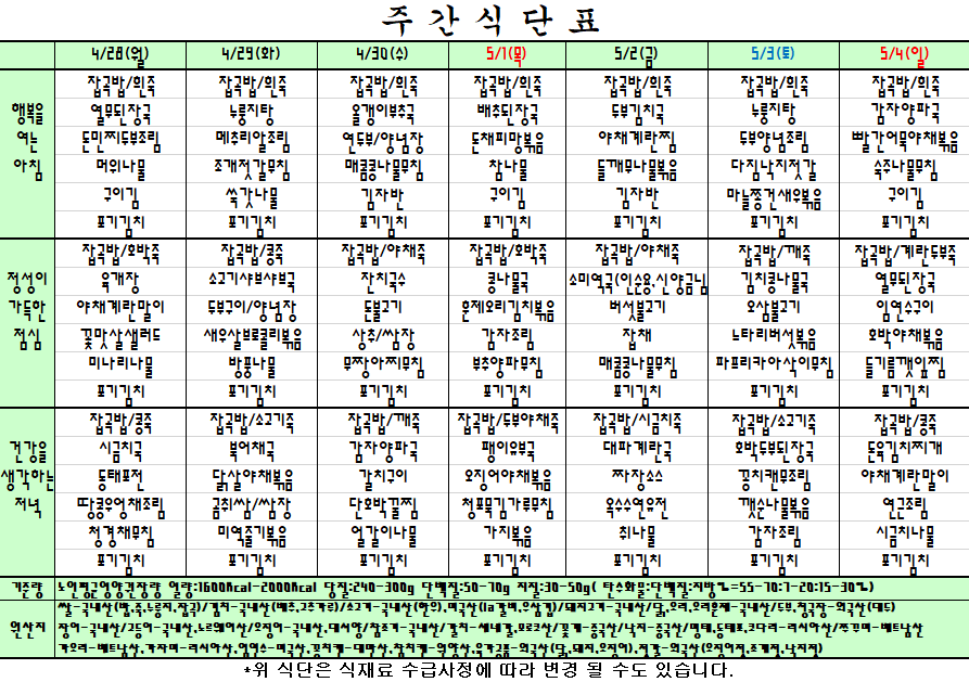 첨부파일 첨부 주간식단표 4.28~5.4.png [File Size:50.5 KB/Download:8]