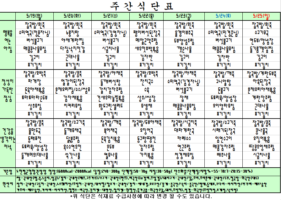첨부파일 첨부 주간식단표 5.19~5.25.png [File Size:49.7 KB/Download:9]