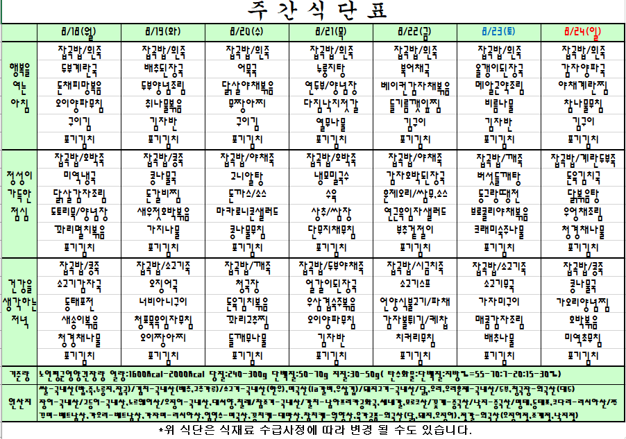 | 8.18~8.24 주간식단표 관리자2025-08-13조회수 610 |