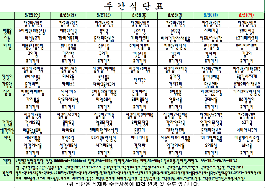 | 2025.8.25~8.31 주간식단표 관리자2025-08-20조회수 602 |