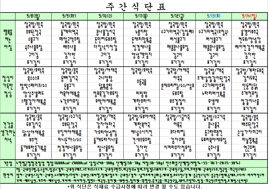 주간식단표 |