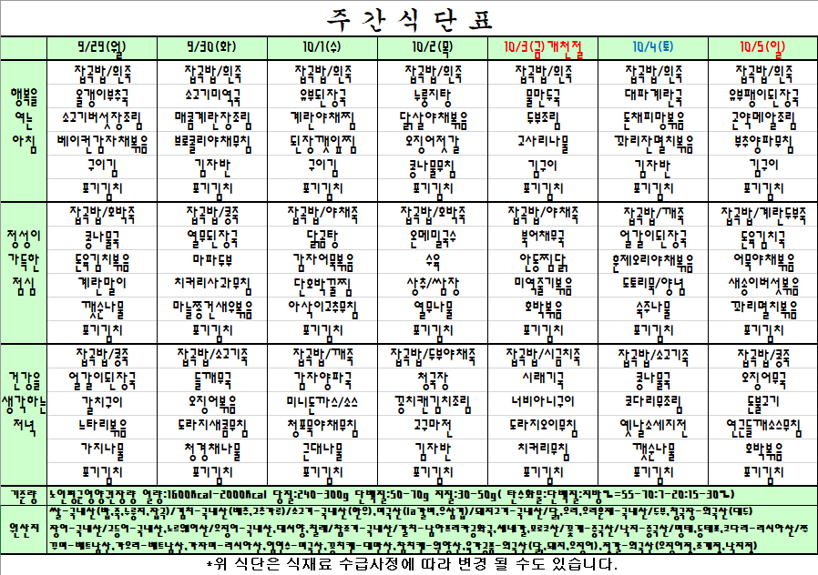 | 25.9.29~25.10.5 주간식단표 관리자2025-09-25조회수 485 |