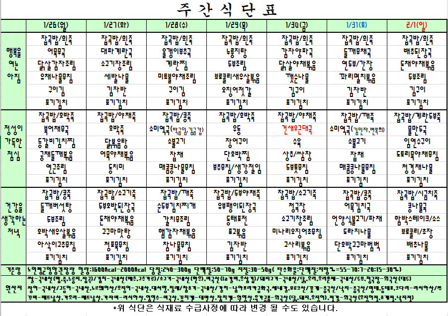 | 다음글 | 26.1.19~26.1.25주간식단표 |