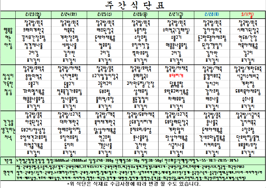 | 다음글 | 26.2.16~26.2.22주간식단표 |