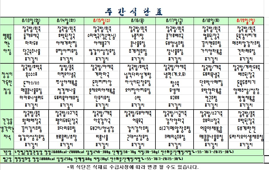 | 2018.08.13~08.19. 식단표 관리자2018-08-13조회수 3558 |