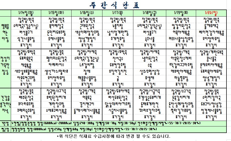 | 2019.01.14.~2019.01.20. 식단표 관리자2019-01-11조회수 3533 |