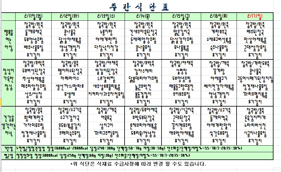 | 2019.02.11.~02.17식단표 관리자2019-02-11조회수 3511 |