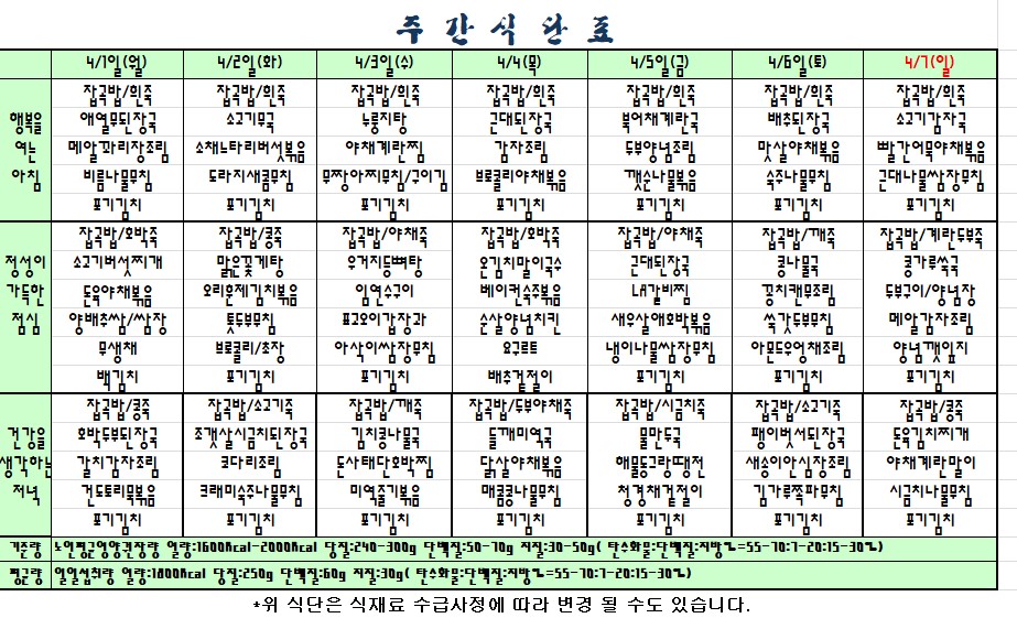 2019.4.1~4.7 식단표 |