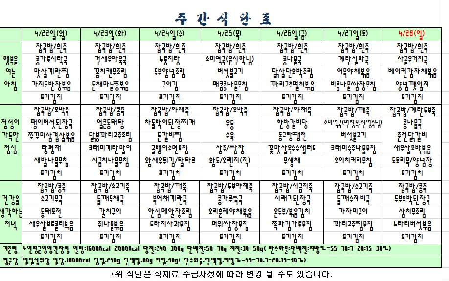첨부파일 첨부 식단표2019.04.22~04.28.png [File Size:689.2 KB/Download:9]